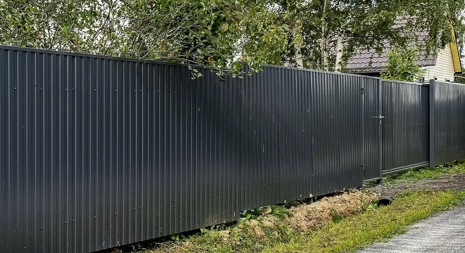 Заборы из профнастила является самым популярным, практичным и оптимальным по соотношению цена качество. Помимо своих основных преимуществ забор из профлиста один из самых неприступных за счет гибкого и острого режущего края.